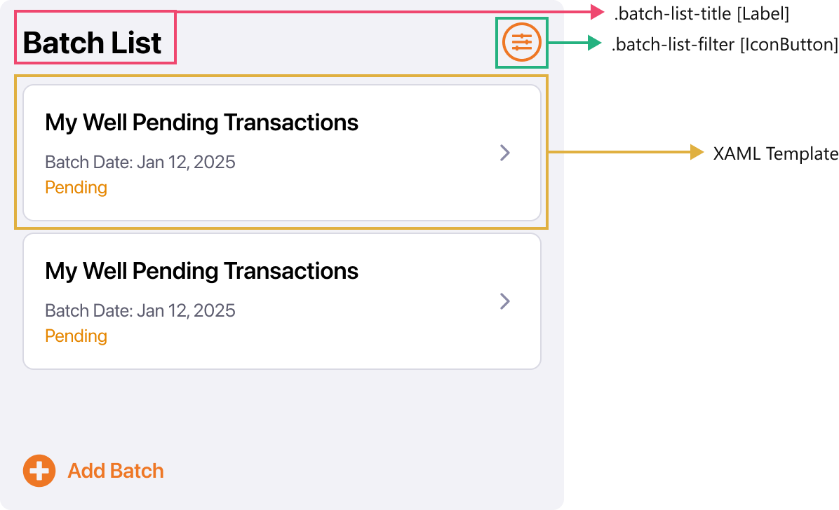 Displays a list of batches. M v7.0C v17.4 Block Configuration Post Batch Save Action Specifies the navigation action to perform after adding a new batch. Item Template Defines the XAML template used to display each batch item. Status Determines which batches to display based on their status. Allow Add Indicates whether individual are allowed to add a new batch. Detail Page The financial batch detail page to navigate to when a batch is clicked. Allow Filter By Campus Specifies whether batches can be filtered by campus. Display Campus Types Specifies which campus types to filter batches by. Display Campus Statues The statues of campus statues to filter the batches by. Page Load Size Defines the number of batches to load per pagination step. Styling