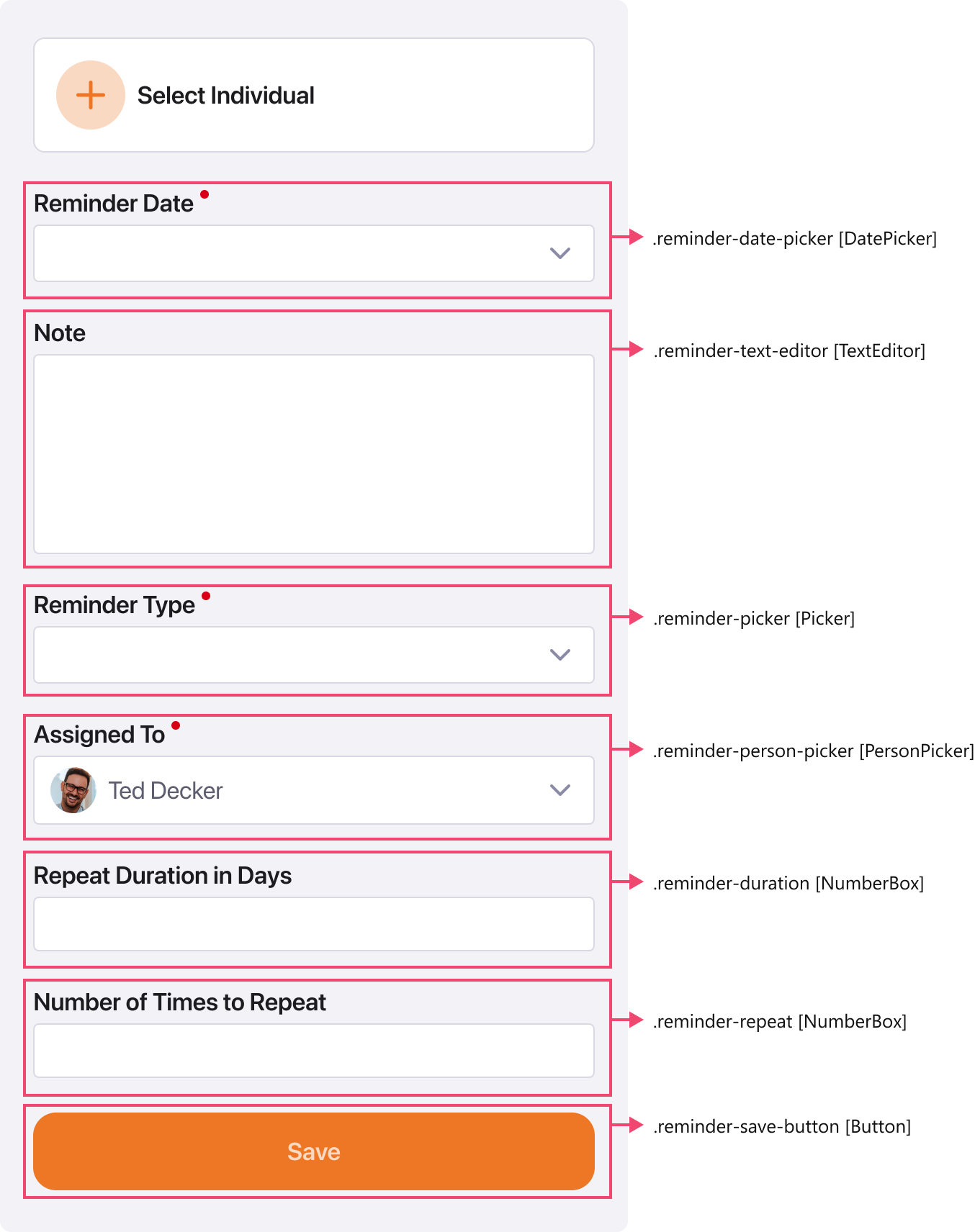 Allows a reminder to be edited or created. M v5.0C v15.1 Block Configuration Header Template This is the template used to display important action-related UI. Unless you have a proficient understanding of data bindings and XAML, you should only really make styling tweaks in here. Save Navigation Action The navigation action to perform when the save button is pressed. Page Parameters This block looks for the following page parameters (query string). KeyTypeDescription ReminderGuidGuidThe Guid of the existing reminder you wish to edit. EntityTypeGuidGuidThe Guid of the Entity Type of the Reminder you're creating. EntityGuidGuidThe Guid of the entity of the Reminder you're creating. Styling