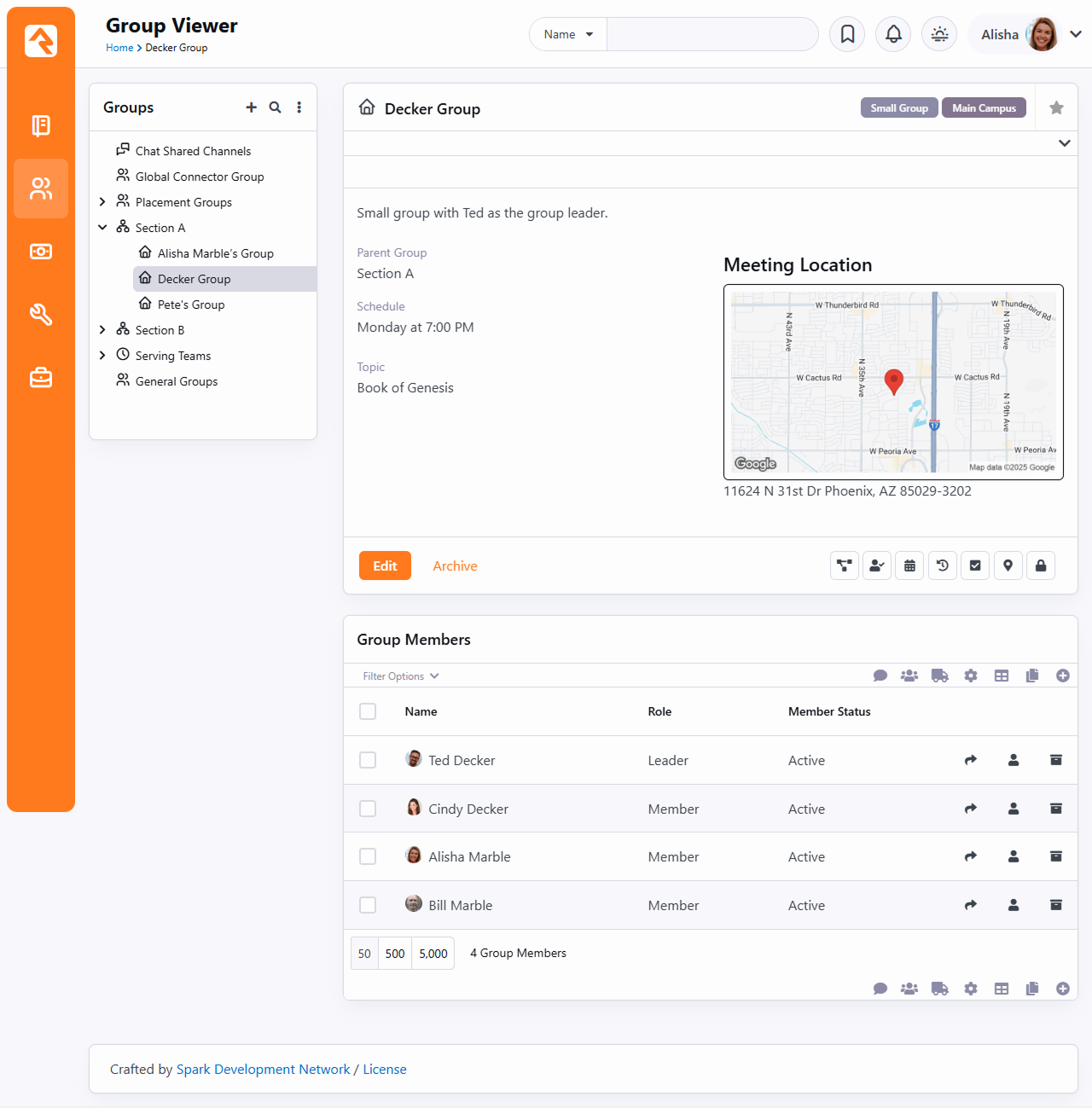 • Small Group Sections: This group type works in conjunction with the Small Group type and acts as a leadership level to provide hierarchy for your groups. Again, feel free to use this type as a launching point for getting started.