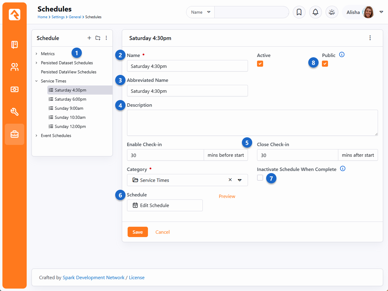 8. Show Publicly - Setting this allows you to filter out schedules that are not public-facing.