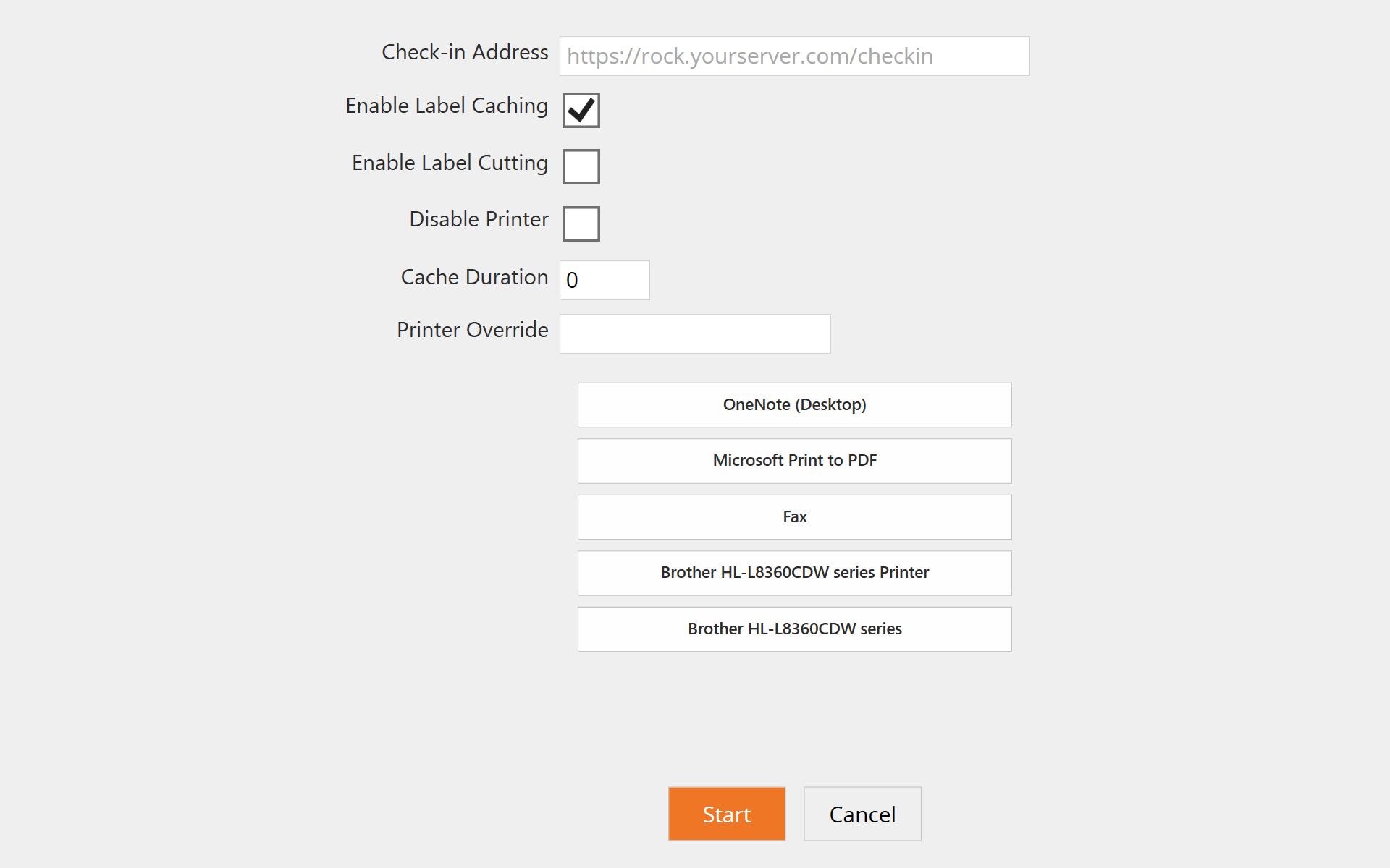 If you're planning on running the check-in kiosk on a PC platform, the Windows Client provides a simple and powerful hosting experience. The client application can be downloaded from your Rock install under Admin Tools > Power Tools > External Applications. Configuration After running the setup application, you'll have a Rock Check-in icon in your Start Menu and on your desktop. When you launch the application, you'll see the settings screen. Unlike the iPad application you'll see this screen on every launch, but the settings you select will be remembered for you. Below is a summary of these settings. SettingDescription Check-in AddressThis is the initial page that will load when the application launches. Enabling Label CachingThis setting will cache the loading of check-in labels, which keeps them from being downloaded on each check-in. Cache DurationThis determines how often the labels will be re-downloaded. The cache can also be expired by stopping the application and restarting. Printer OverrideThis setting has the effect of always printing from the device to the printer IP address entered here. Printer ListUnder the Printer Override setting you will see a list of local printers configured in Windows. This allows you to print directly to a USB printer. TipQR Code ScanningDon't forget that QR code scanning to identify the person is supported in the Windows application. For details on setting up your device to enable this feature see the Kiosks chapter above. Note that scanning of QR codes generated by [Classic] Mobile Check-in is still limited to iPads only. NoteClosing the Windows ClientAfter pressing the Start button, the check-in application will load the initial check-in screen. When you are ready to exit, simply tap or click in the upper left corner of the screen six times in three seconds to close the application.