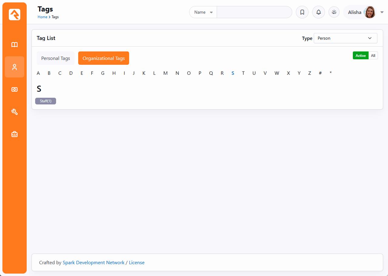 If you’re familiar with tags in photo-sharing sites like Flickr or notes applications like Evernote, then you already understand how to use them in Rock. Tags offer a way to categorize people, content channels or any other entity type. You can literally tag anything. For the purposes of this manual, we'll be talking about tags as they relate to the Person entity. Maybe you want to label a person as a future volunteer for recruiting or maybe you’d like to tag active military personnel. While you could create a group, that approach might be a little too cumbersome if you simply want to use it as a label for a person, so you might consider a tag instead. This helps keep your list of groups to a minimum, making them easier to manage. Tags are added to a person in the bio section of the Person Profile page. You can add a tag to a person by clicking the ti ti-plus icon in the bottom-left portion of the badge block and typing in the name of a tag directly onto the page. To save the tag link, simply press enter (i.e., there is no “Save” button). If a tag already exists, it will be displayed in the auto-complete area. If you type a new tag, it will confirm that you wish to create a new tag before adding it. Your Tags vs. Our Tags There are two types of tags in Rock, personal tags and organizational tags. Personal tags are only seen by the creator, while organizational tags are viewable by everyone in your organization. When you create new tags, they are created as personal tags by default, so they can only be seen by you (and your system administrator). Your administrator can promote personal tags to organizational tags upon request. When they are promoted, they keep all the people tagged, so it’s a good idea to get started with a personal tag. TipInstead of requesting a new organizational tag from your administrator and waiting for it to be added, consider creating a personal tag yourself and then requesting that it be promoted to an organizational tag. Viewing Tags To view all the individuals in a specific tag, go to People > Tags. The Tag List page displays all your tags with the option at the top to switch between personal and organizational tags. Clicking on a specific tag will display all the individuals in the selected tag. You can also manage the individuals within a specific tag by adding or removing them from the list here (as opposed to using the person profile for each person individually). If you want to filter tags even further, you can select a type from the Type dropdown menu near the top-right of the block. Administrating Tags Tags can be managed by an administrator under Admin Tools > Settings > General > Tags. The two most common reasons to administrate tags are to delete tags that no longer serve a purpose and to promote personal tags to organizational tags. Administrators, or those with tagging rights, can also secure tags, limiting who can view them. Add security by clicking on the ti ti-lock button in the tag's detail screen. This applies only to organizational tags, since personal tags are already limited to the tag creator and administrators by default. For more information about security settings, see the Securing Rock chapter of the Rock Admin Hero Guide. NoteTag SecuritySome administrative tasks related to tags (like deleting them) operate off the security of the Entity. Be sure to set the entity security for tags (Admin Tools > Settings > Security > Entity Administration > Tag) to reflect your needs. Out of the box, the Staff Workers and Staff Like Workers have permissions to view, edit and delete tags.