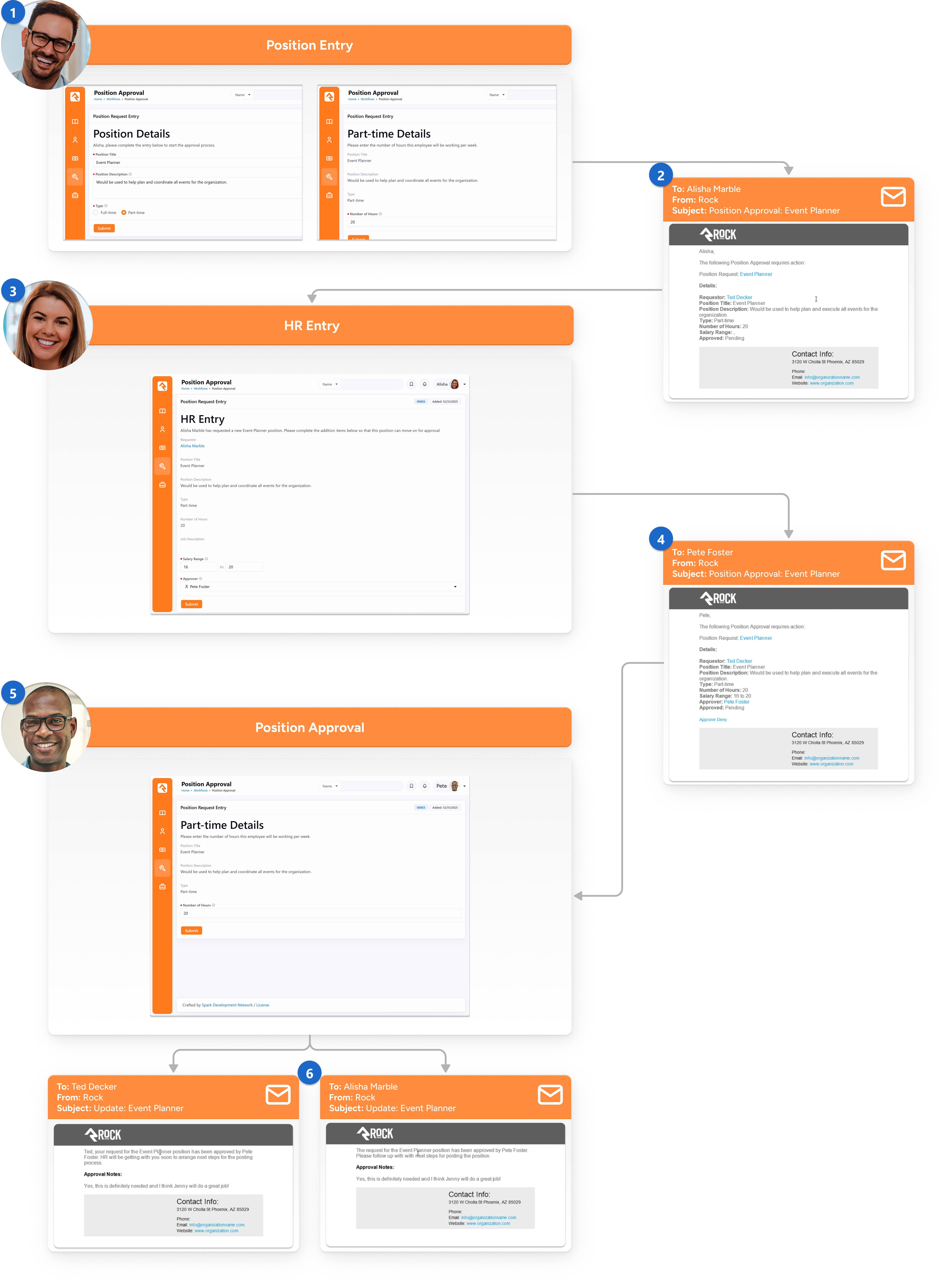 6. Emails - With the request approved, emails are sent to both Ted to let him know the good news and Alisha so that she can start the needed human resources paperwork.