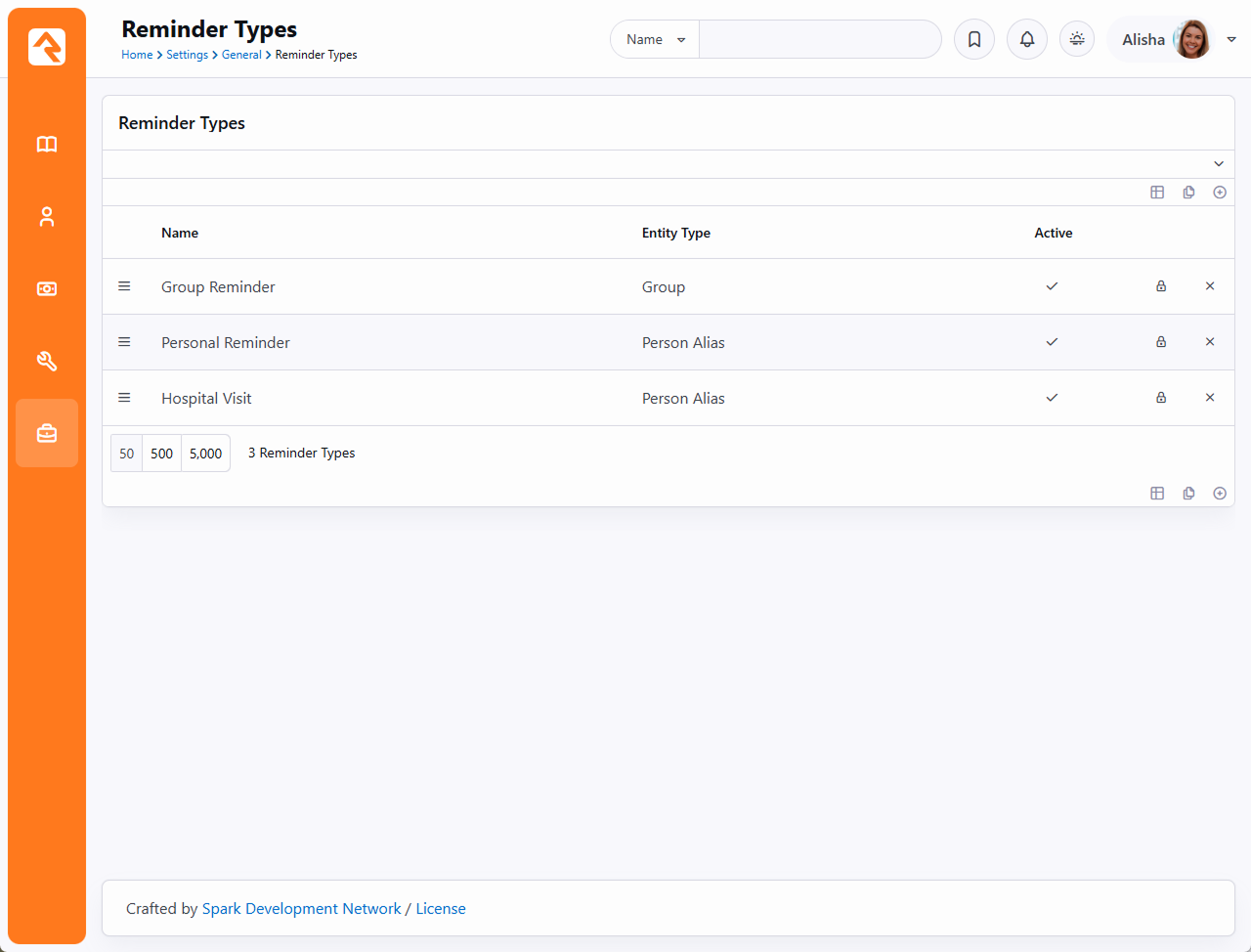 Every reminder you create will be of one of the types you configure as described above. You can create as many as you need, and you can assign security to each one if it's only available for certain roles or individuals. In the next section, we'll see how these reminder types get used to create reminders.