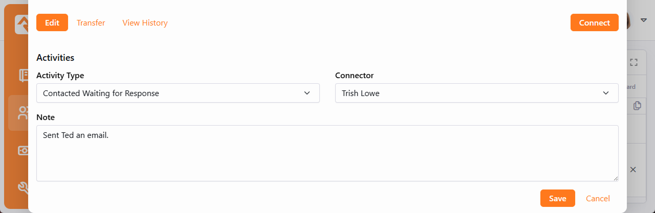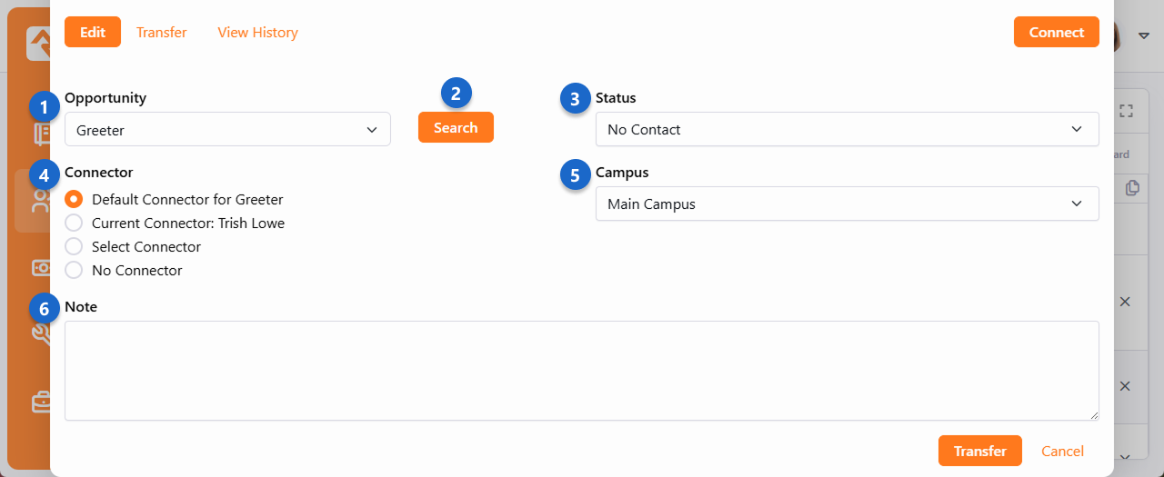 4. Connector - Most of the time you'll want to clear the current connector when you transfer the request. Sometimes you'll just want to select a new connector without changing the opportunity. Either way, the options provided here allow you to select: