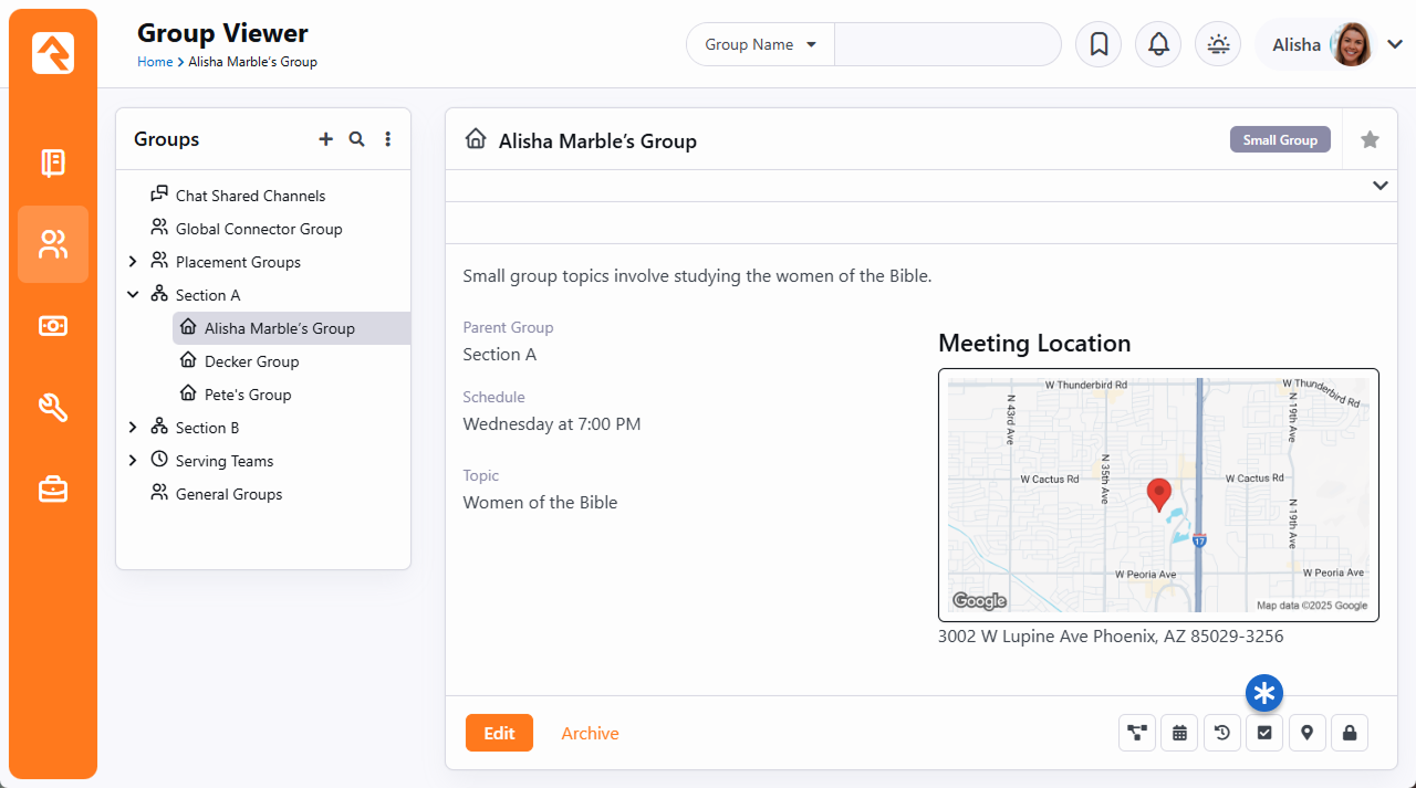 There are several ways to collect group attendance. The first is to use the internal attendance features built into the Group Viewer under People > Group Viewer. You'll notice an attendance button on the group details block for groups that are configured to take attendance.