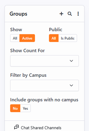• Include Groups With No Campus: If this is set to No then only groups with a campus will be shown.
