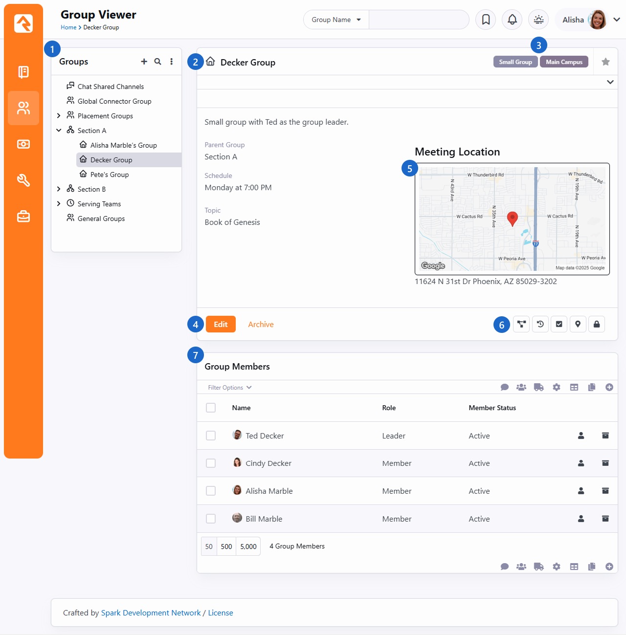 4. Action Bar - There are options to edit, archive or delete a group. Whether you see