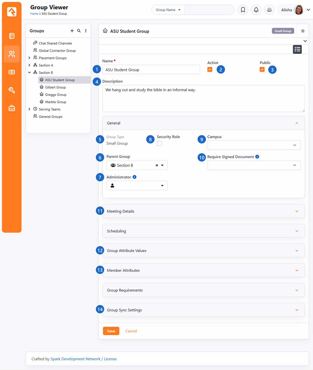9. Campus - Providing an optional campus will link the group to a specific campus. This isn’t shown if you have only one campus.