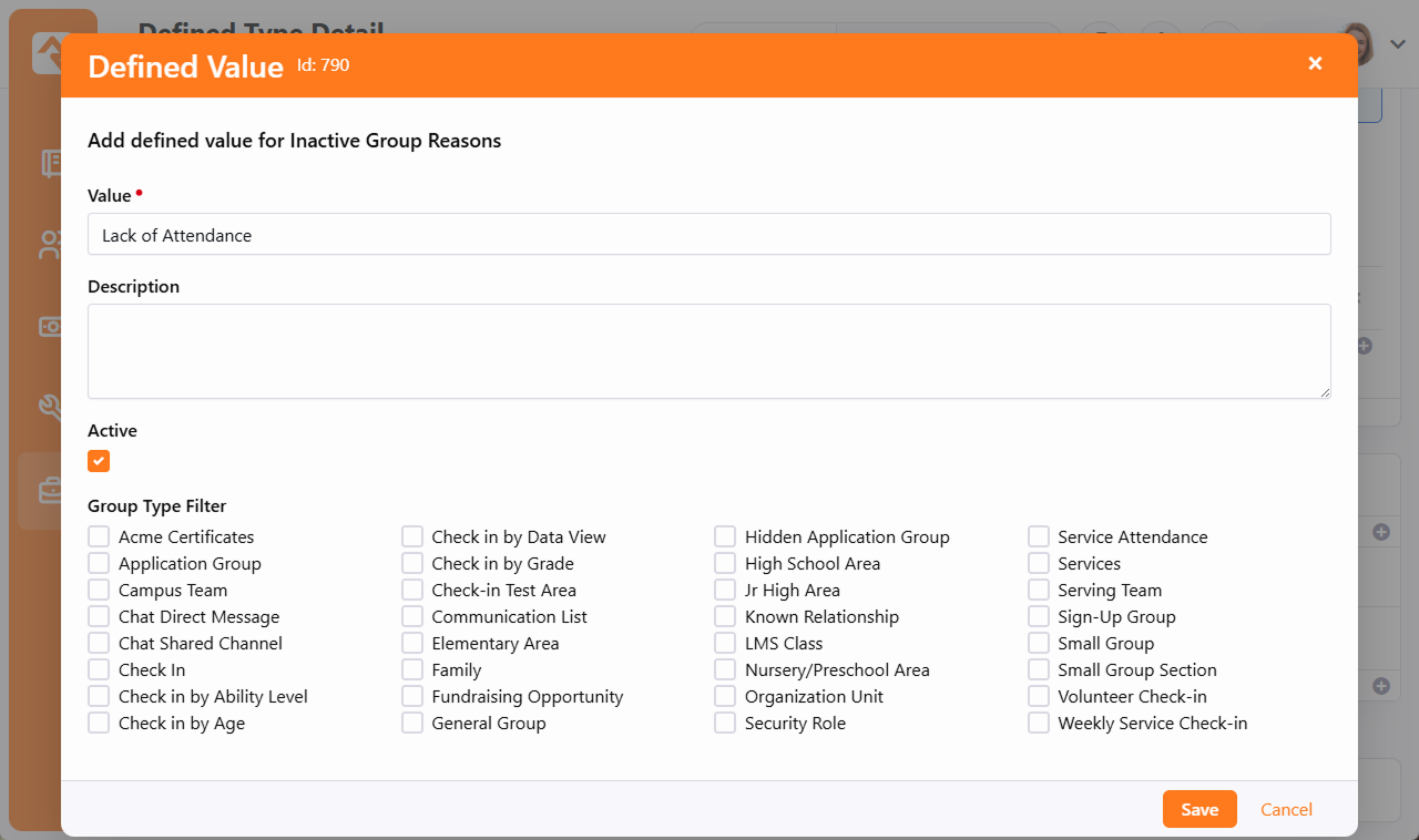 2. Active - You can inactivate the group by deselecting this checkbox. See