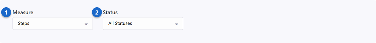 The Status toggle utilizes the Statuses you have already set and filters chart data by the stage each Step is in.